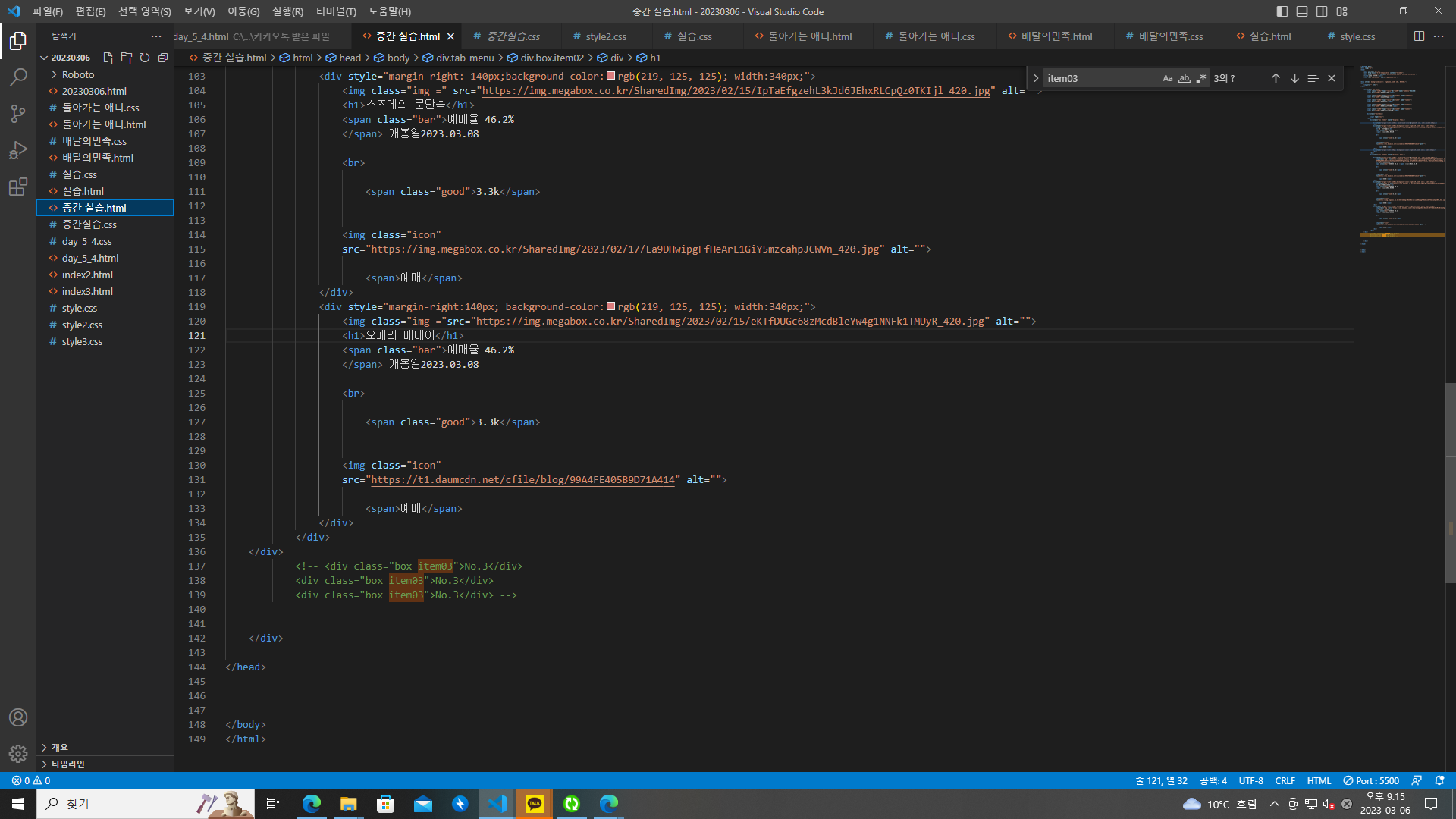 이 문단이 div에다 class를 주는데 box 띄고 item03이니까 두개 모두 속성을 부여해준것이다.