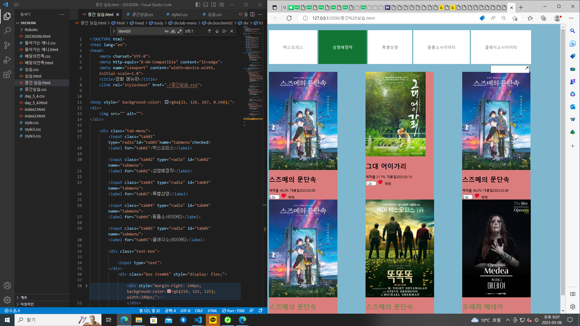 html에 16번째 줄에 input=tab01 고유 이름을 주고 label로 표지판을 만드는데 이름을 박스오피스로 설정한것이고
