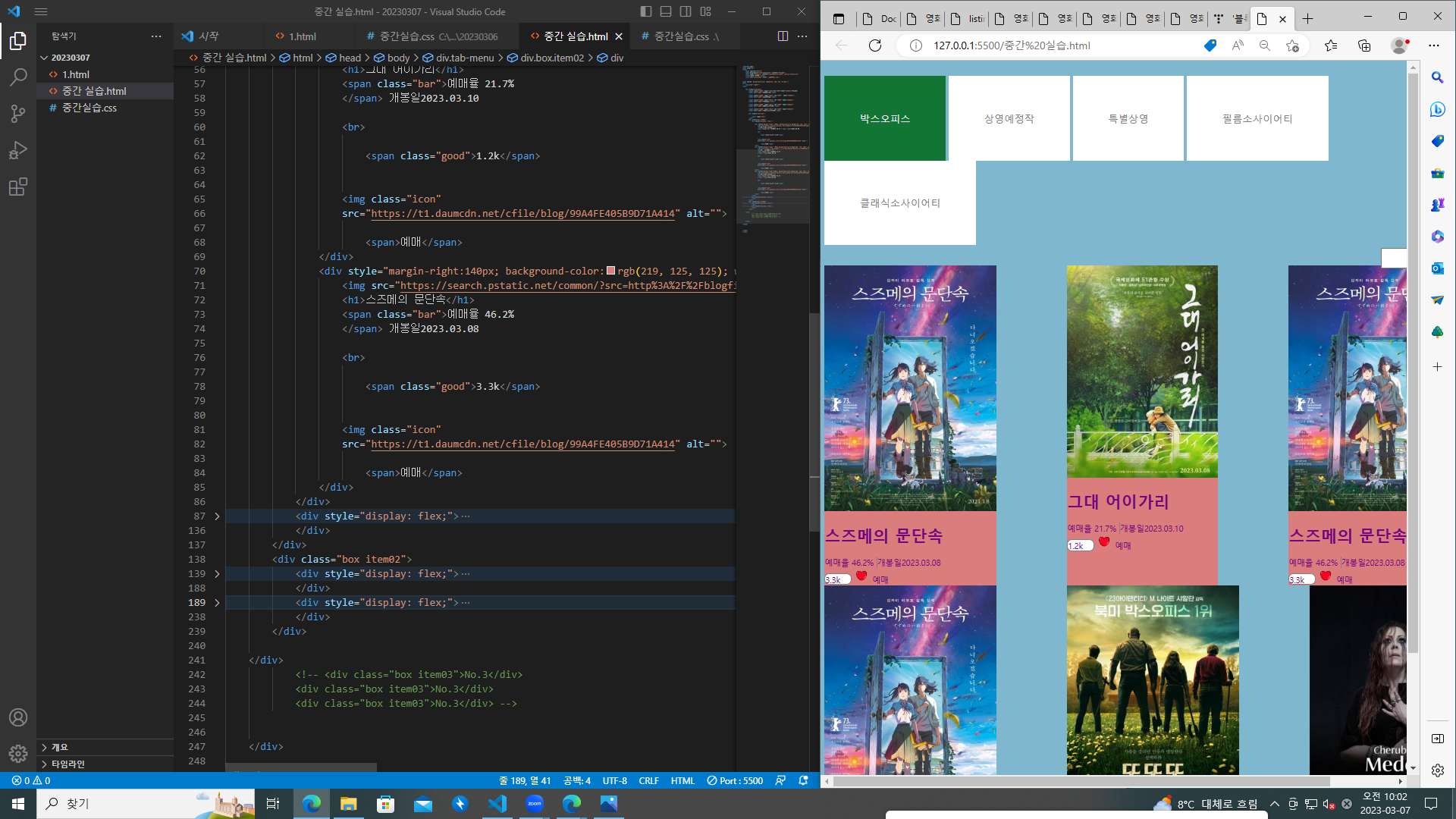 이렇게 써보면 한 영화포스터가 완성되고 난 복붙해서 밑으로 나열했다.