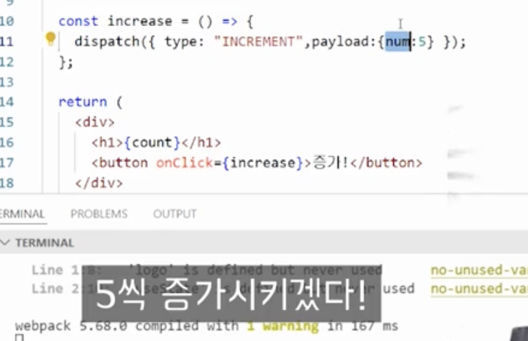 액션을 언제 던져주느냐? increase증가 버튼을 눌렀을때
